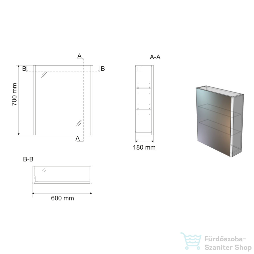 AQUALINE DENEB tükrösszekrény, 60x70x18cm, matt fehér (DN060)