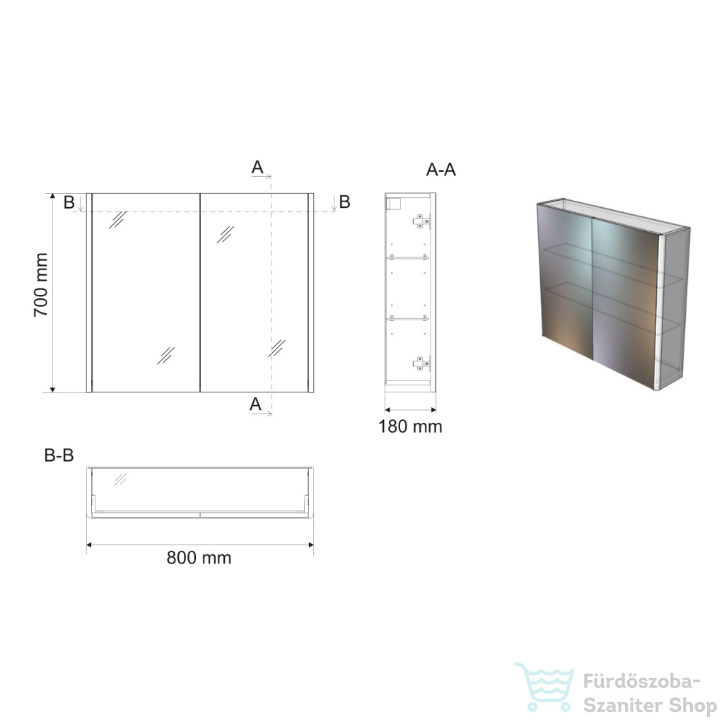 AQUALINE DENEB tükrösszekrény, 80x70x18cm, matt fehér (DN080)