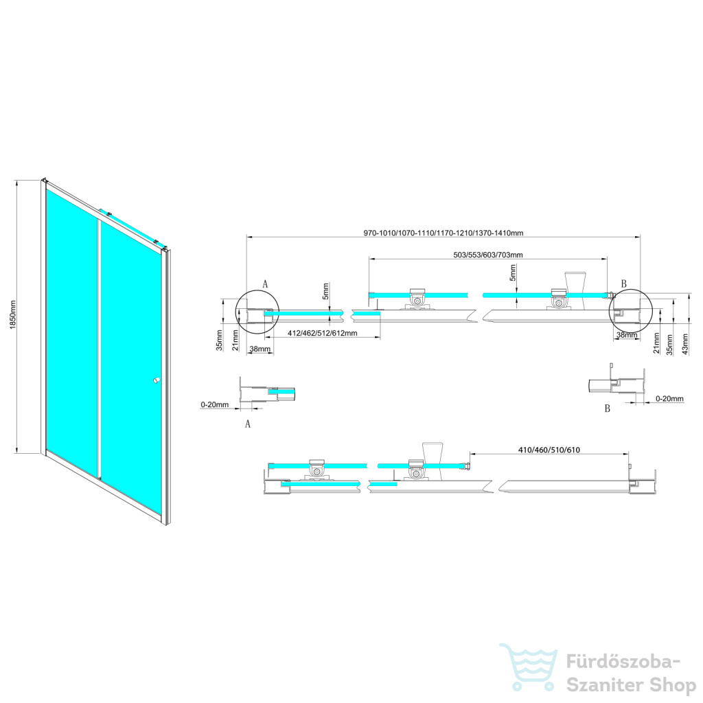 AQUALINE UGGA tolóajtó, 1000mm, transzparent üveg (ATS100)