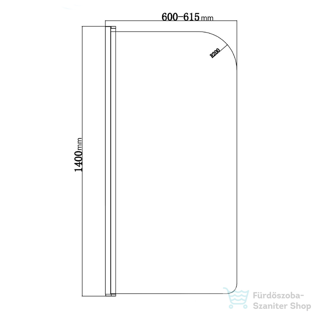 AQUALINE VILMA kádparaván, 600mm, transzparent üveg, matt fekete profil (AQ6014B)