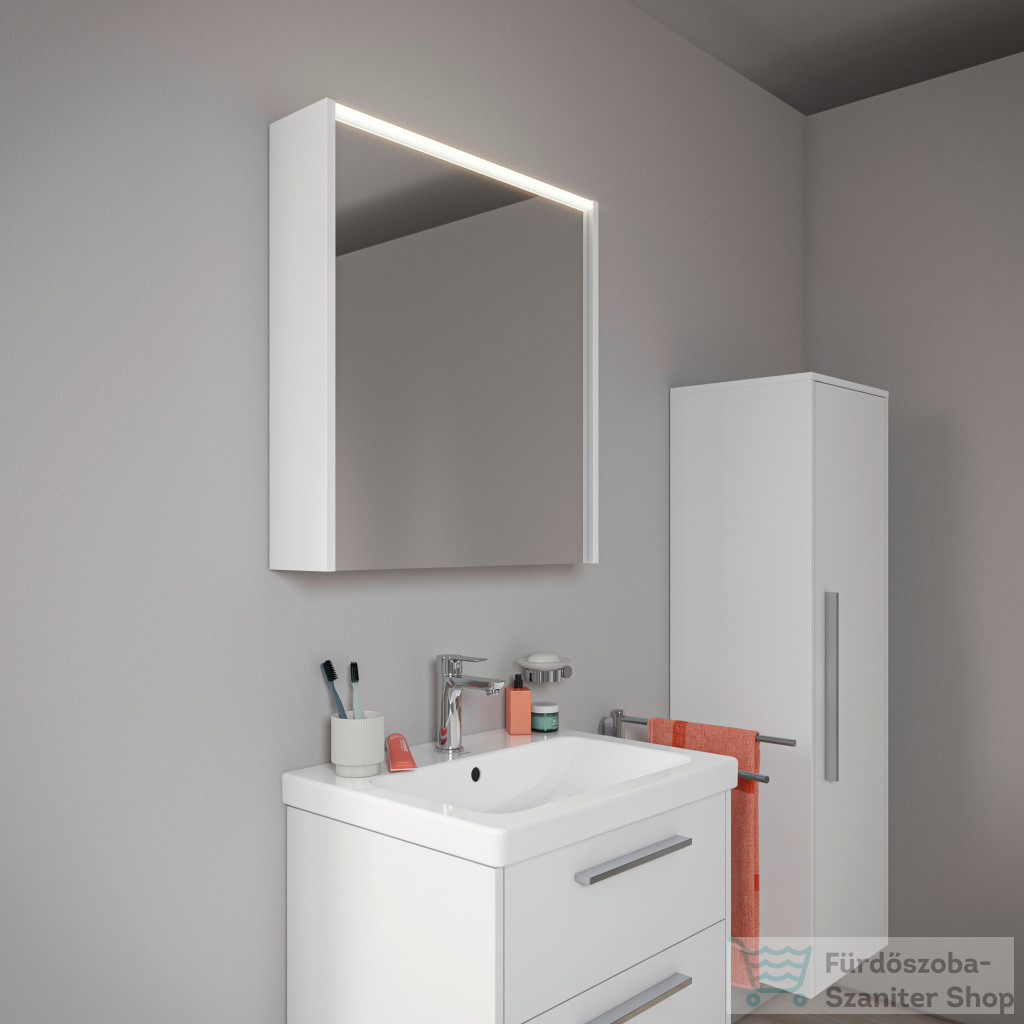 Duravit D-CODE 65x70 cm-es tükrös szekrény világítással, dugaljjal, balos, matt fehér DC7105L18180000