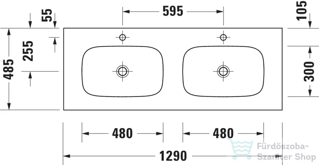 Duravit SIVIDA 129x48,5 cm-es beépíthető dupla mosdó, matt szatén fehér 2650043200
