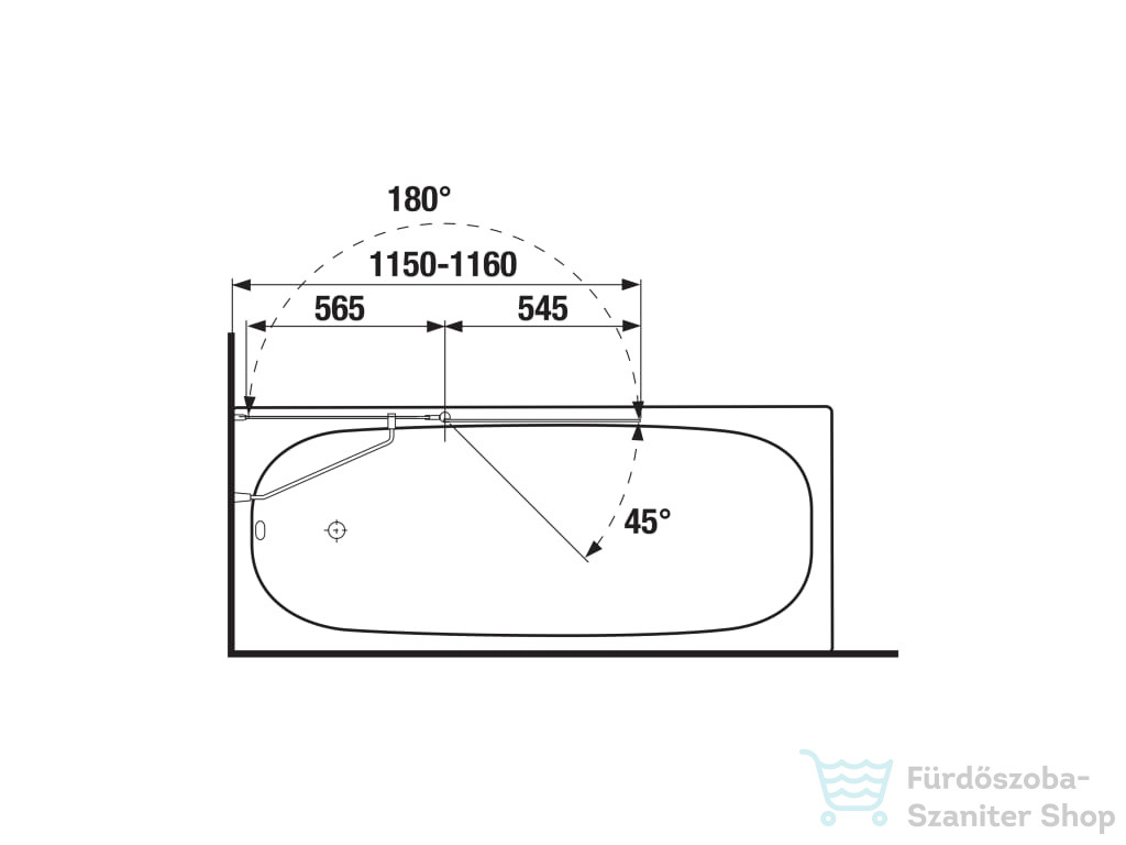 Jika NION 115x150 cm-es fix részes kádparaván átlátszó üveggel, fényes ezüst színű profillal, H2572N60026681