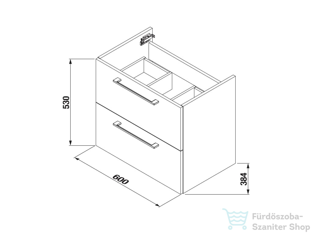 Jika PONTA 60x38,4 cm-es, 2 fiókos fali mosdótartó szekrény H810512 mosdóhoz, fényes/matt fehér H40J5224025001