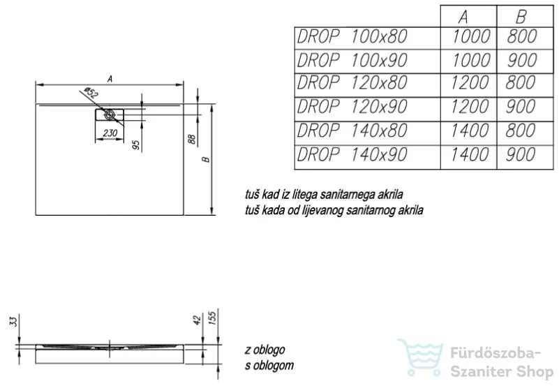 Extra erősítés a 100% öntött szaniter akril zuhanytálcáknál