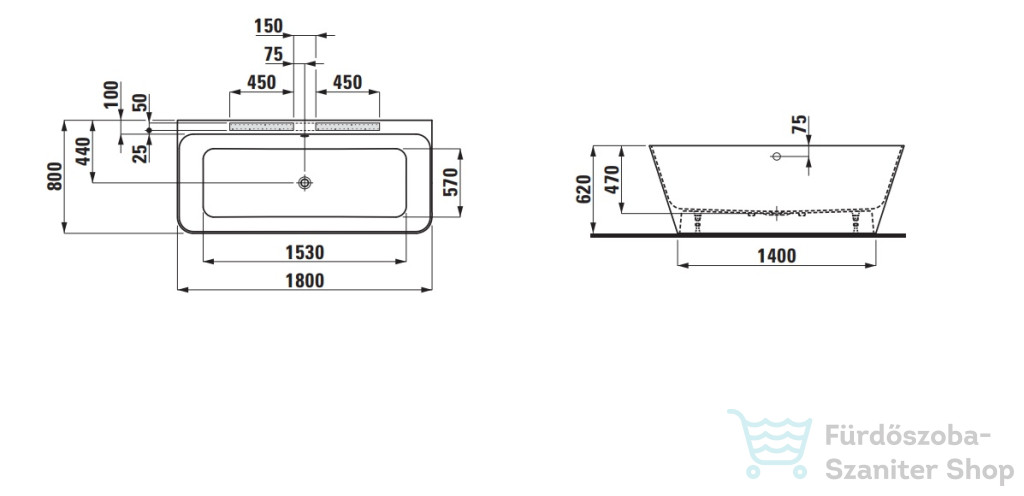 Laufen LUA 10x75 szabadonálló kád, Marbond kompozit anyagból, fehér H2200820000001