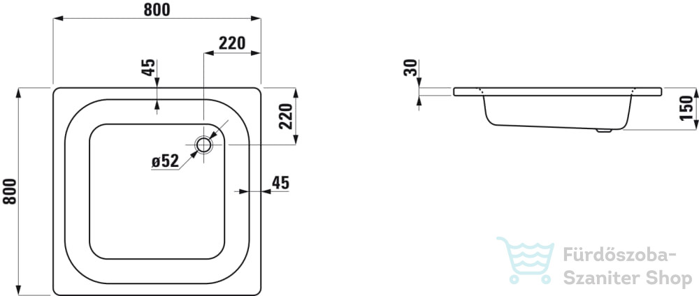 Laufen Platina Antislip 80x80 cm-es acéllemez zuhanytálca szifon nélkül, fehér H2150216000401