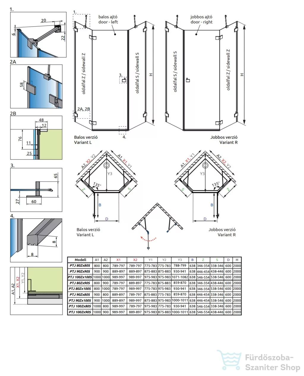 Radaway Essenza Pro 8 PTJ 80x80B szögletes zuhanykabin, balos, króm 10530000-01-01L+10530100-01-01
