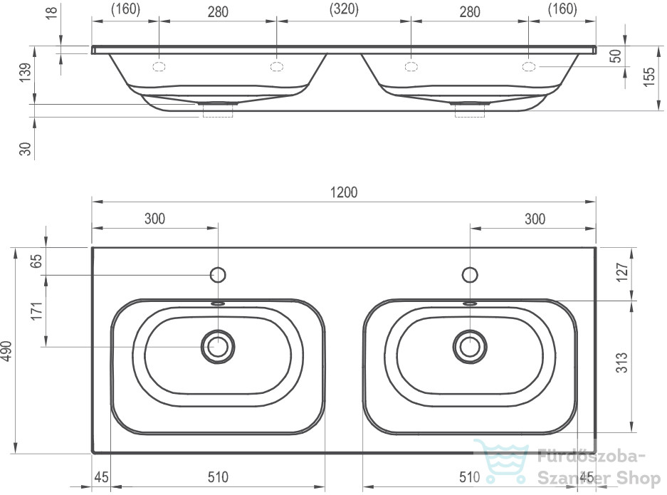 • A képen látható csaptelep és leeresztő nem tartozéka a terméknek!