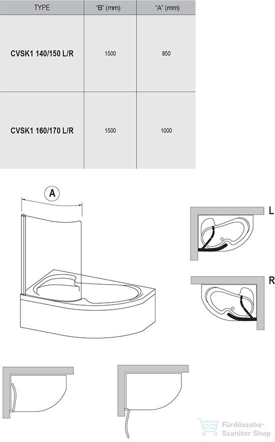 Ravak CVSK1 Rosa 140/150 balos kádparaván, Króm+transparent 7QLM0C00Y1