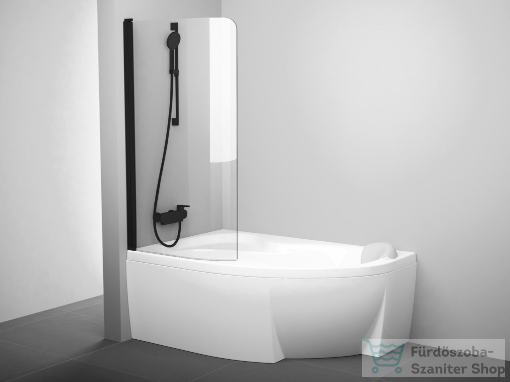 Ravak CVSK1 Rosa 140/150 balos kádparaván, Matt fekete+transparent 7QLM0300Y1