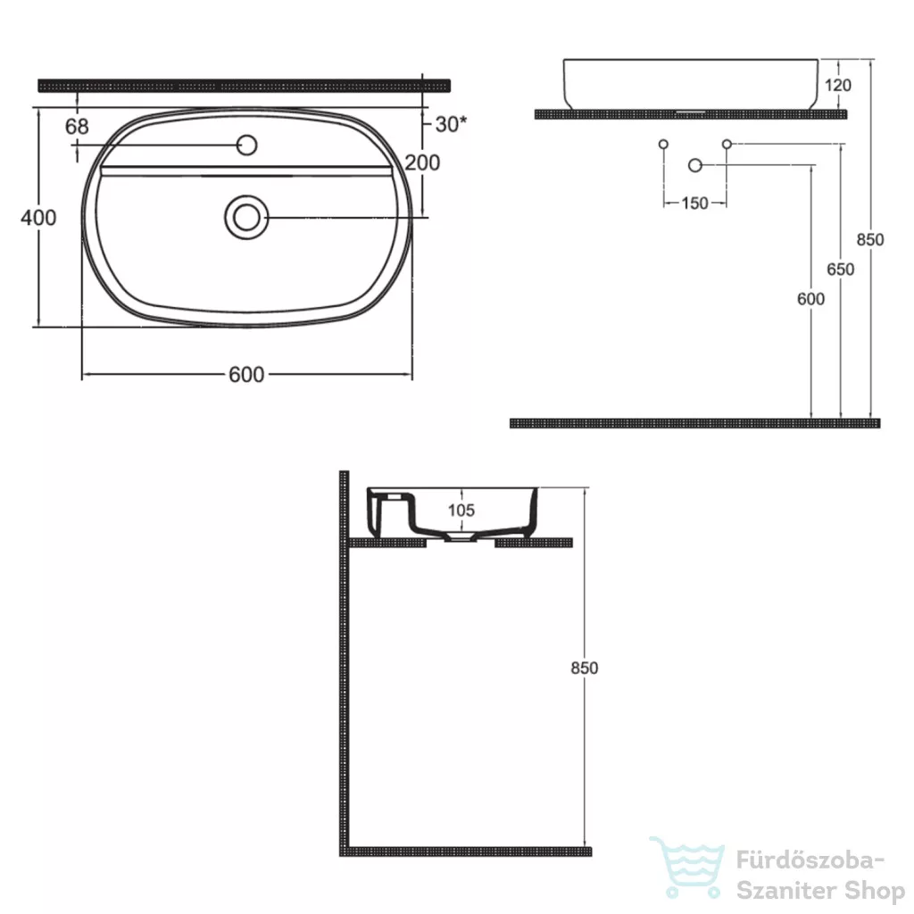 Sapho INFINITY Sintesi kerámiamosdó, 60x40cm, strip fehér (10SI65060)