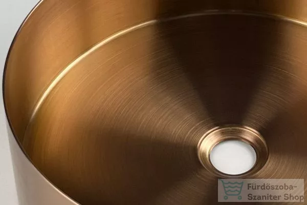 A Marigold pultra építhető rozsdamentes acél mosdó letisztult formavilágával és különleges Rose Gold színével a kortárs fürdőszobák karakteres központi eleme.