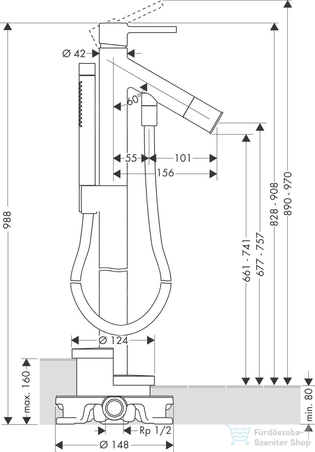 Hansgrohe AXOR STARCK szabadon álló kádtöltő csaptelep zuhanyszettel, alaptest nélkül, szálcsiszolt fekete króm 10456340
