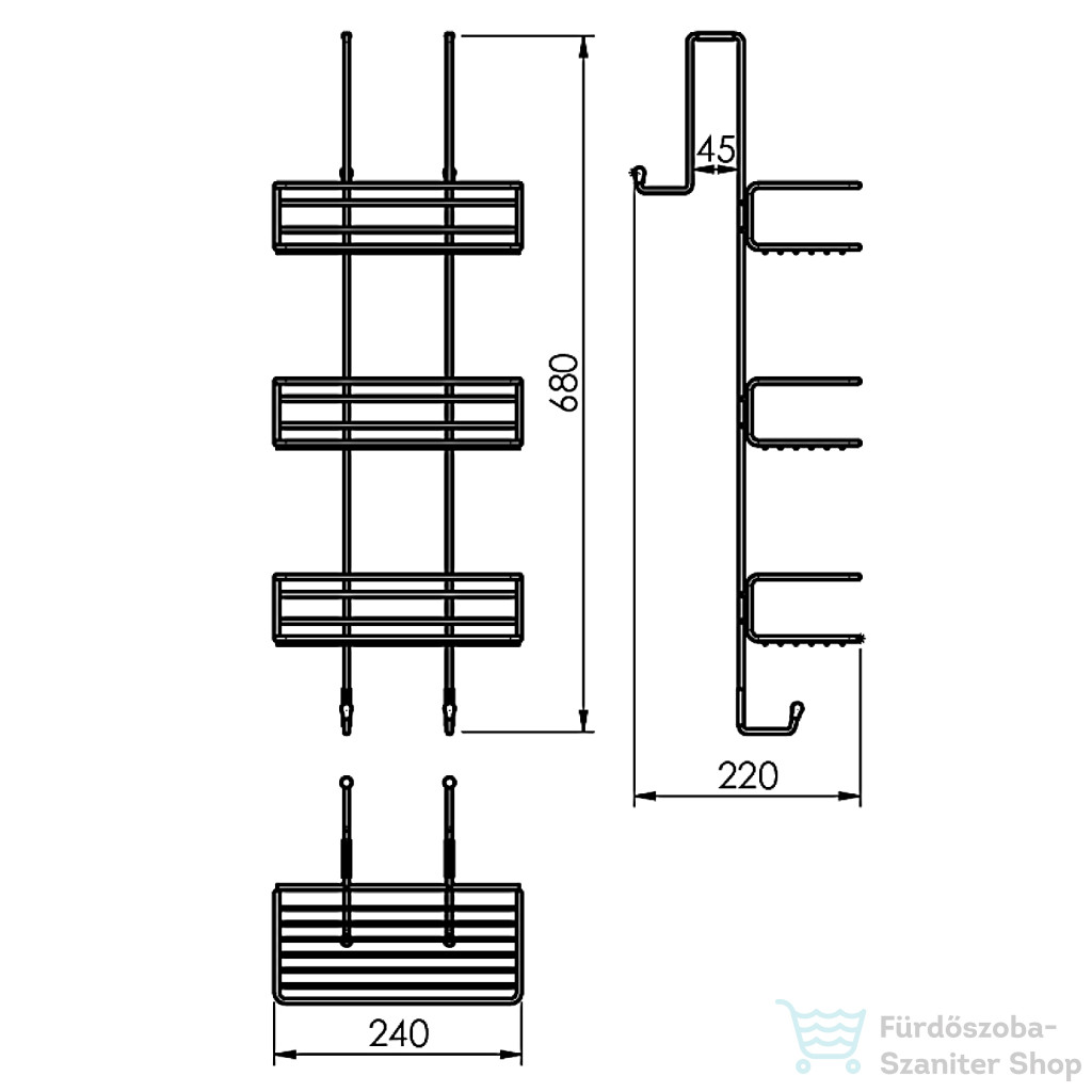 Sapho GEDY CHROM LINE rácsos polc zuhanyzóba, 240x680x220mm, króm (2486)