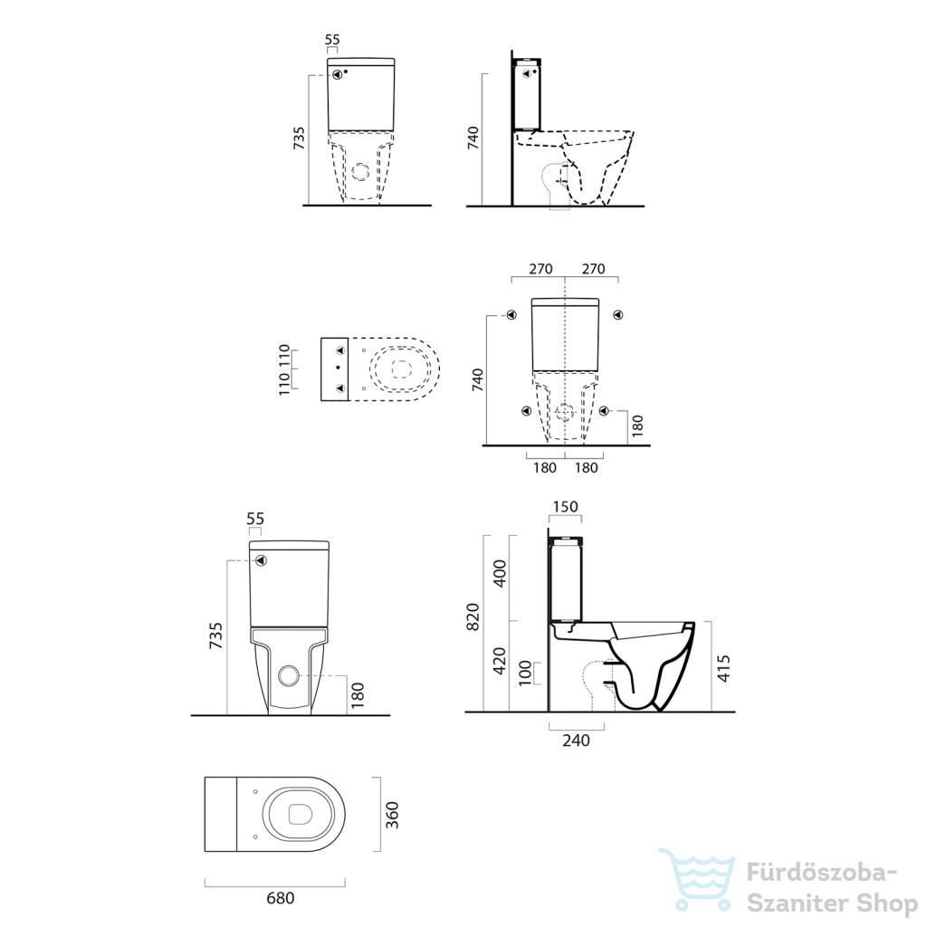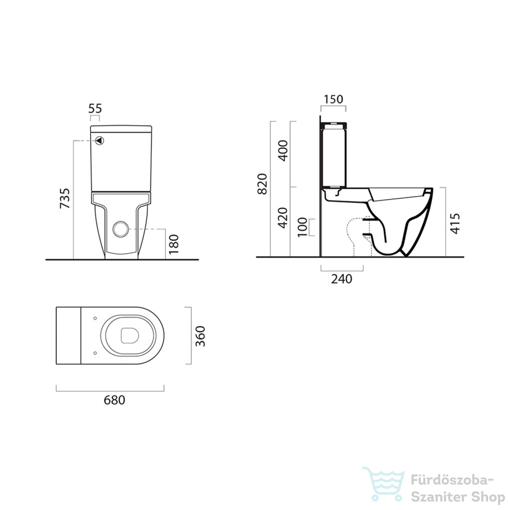 Sapho GSI PURA álló WC-csésze 36x68cm, alsó/hátsó kifolyású, ExtraGlaze (881711)
