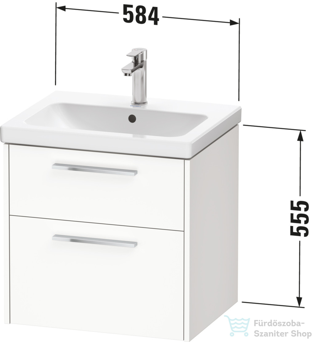 Duravit D-CODE 58,4x46 cm-es 2 fiókos alsószekrény mosdó és csaptelep nélkül, króm fogantyúval, matt fehér DC4670010180000