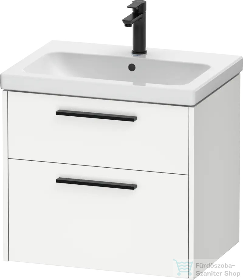 Duravit D-CODE 63,4x46 cm-es 2 fiókos alsószekrény mosdó és csaptelep nélkül, fekete fogantyúval, matt fehér DC46710BD180000