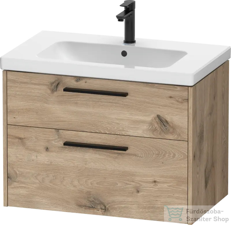 Duravit D-CODE 78,4x46 cm-es 2 fiókos alsószekrény mosdó és csaptelep nélkül, fekete fogantyúval, márványos tölgy DC46720BD550000