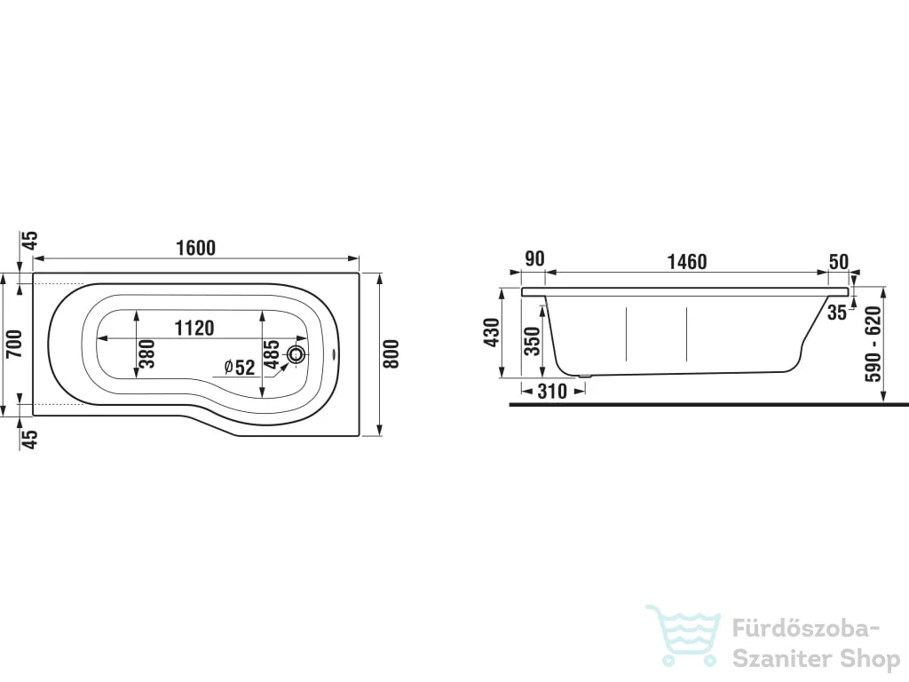A kádláb és a leeresztő külön rendelendő!