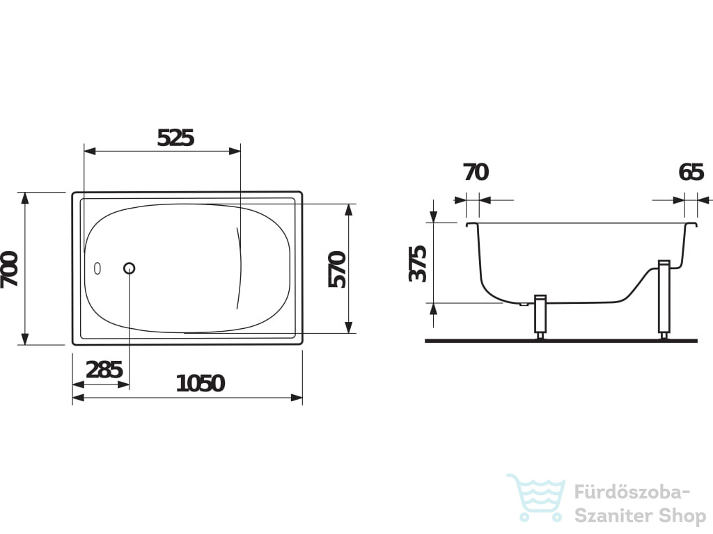Jika RIGA MINI 105x70 acéllemez ülőkád, fehér H2340000000001