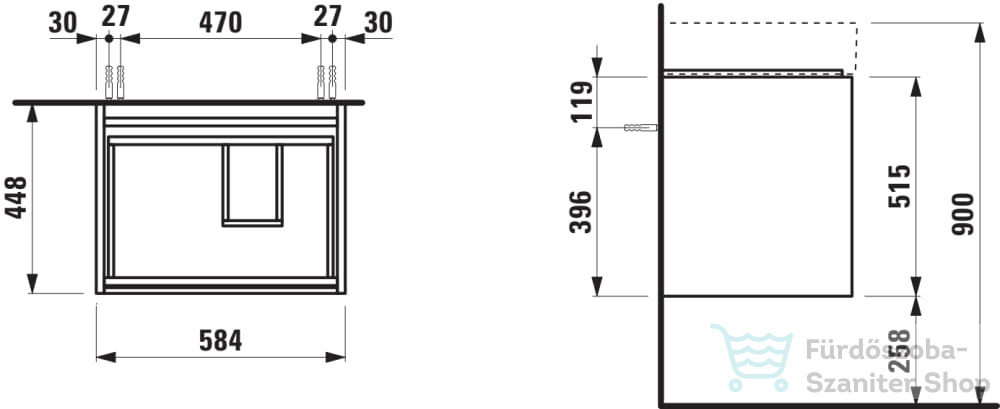 Laufen Lani 60 alsószekrény, 2 fiókkal, H810335 mosdóhoz, fényes fehér H4039421122611