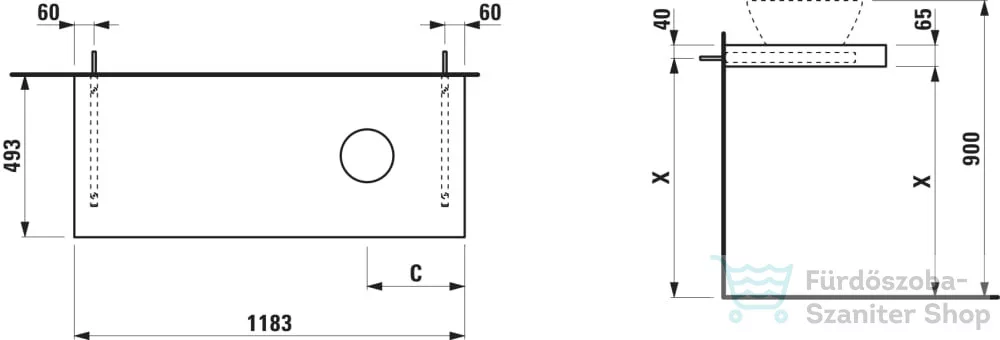 Laufen LANI 118,3 cm-es mosdópult konzollal, jobb oldali kivágással, mosdó nélkül, vad tölgy H4046731122671