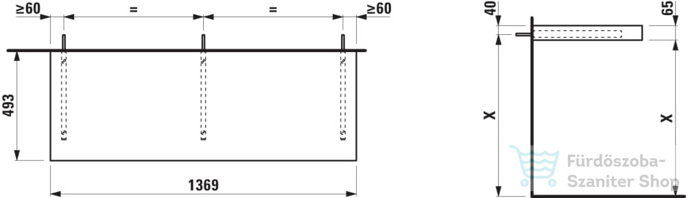 Laufen LANI 136,9 cm-es mosdópult konzollal, kivágás nélkül, matt fehér H4046801122601