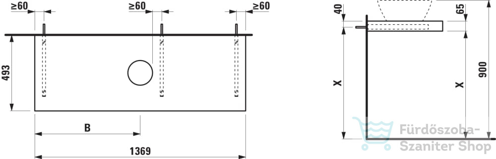 Laufen LANI 136,9 cm-es mosdópult konzollal, középső kivágással, mosdó nélkül, traffic grey H4046811122661