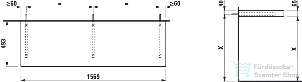 Laufen LANI 156,9 cm-es mosdópult konzollal, kivágás nélkül, matt fehér H4046901122601