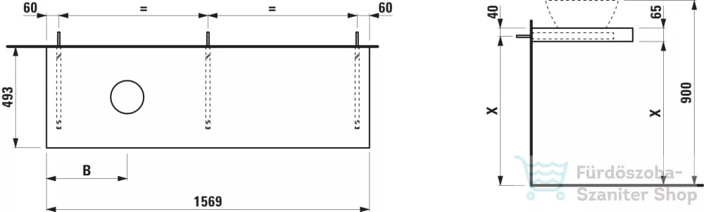 Laufen LANI 156,9 cm-es mosdópult konzollal, jobb oldali kivágással, mosdó nélkül, traffic grey H4046921122661