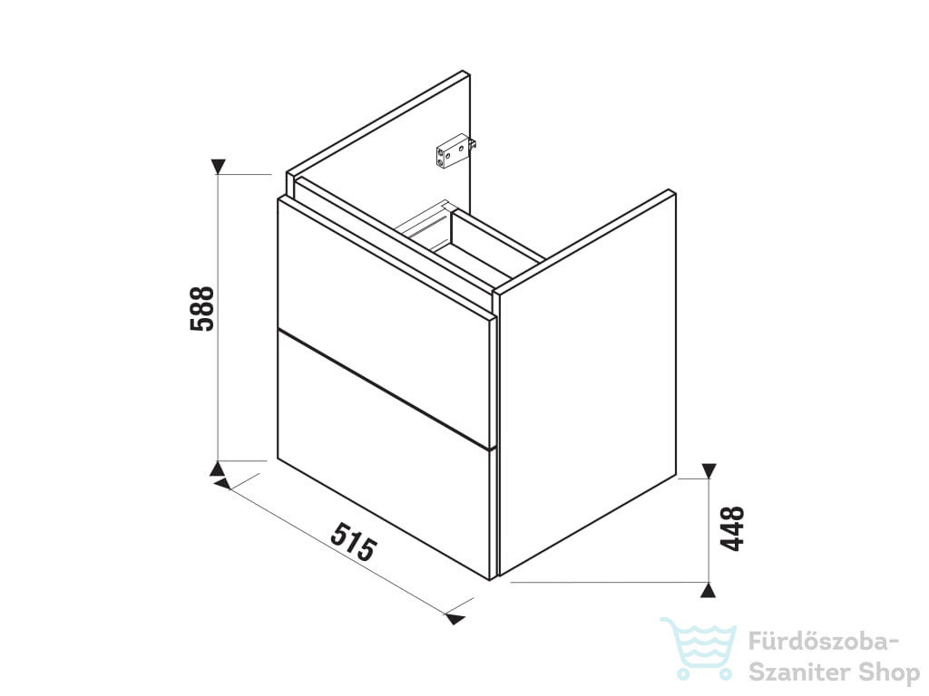 Jika MIO N 51,5x44,8 cm-es, 2 fiókos fali mosdótartó szekrény H812712XXX mosdóhoz, kőris H40J7134013421