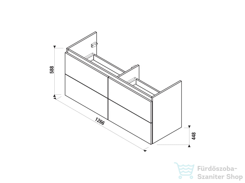 Jika MIO N 126,6x44,8 cm-es, 4 fiókos fali mosdótartó szekrény H814714XXX mosdóhoz, fényes/matt fehér H40J7184015001