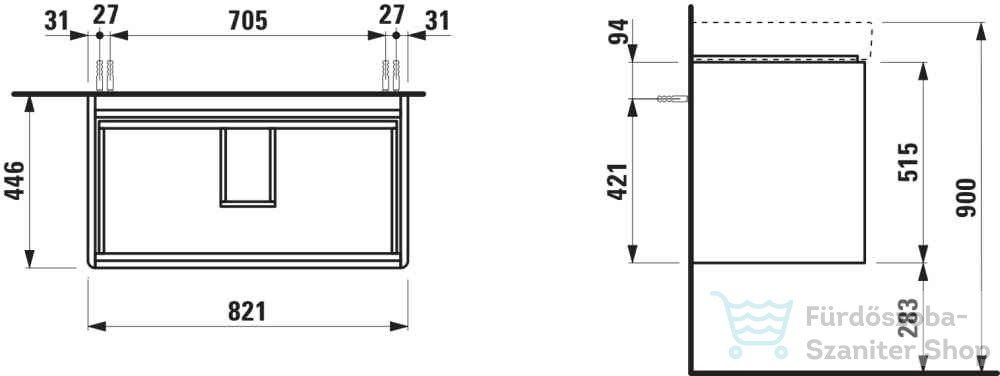 Laufen BASE 2.0 82x44,5 cm-es, 2 fiókos fali mosdótartó szekrény PRO S H813965 / PRO X H810867 mosdóhoz, matt fehér H4113021082601