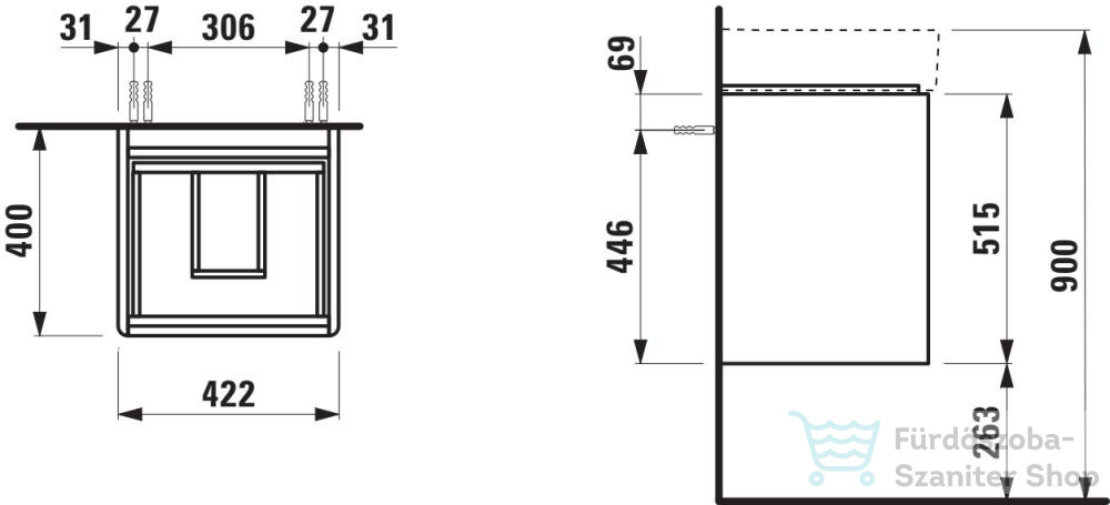 Laufen BASE 2.0 42x40 cm-es, 2 fiókos fali mosdótartó szekrény VAL H815281 mosdóhoz, fényes fehér H4113521082611
