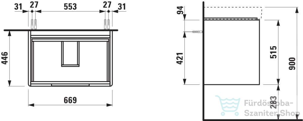 Laufen JUNA 67x44 cm alsószekrény, 2 fiók, PRO S H810967 mosdóhoz, matt fehér H4115121092601