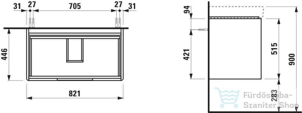 Laufen JUNA 82x44 cm alsószekrény, 2 fiók, PRO S H813965 mosdóhoz, Vad tölgy H4115221092671