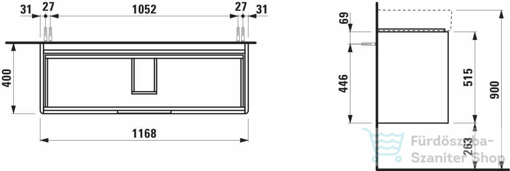 Laufen JUNA 117x40 cm alsószekrény, 2 fiók, VAL H810289 mosdóhoz, matt fehér H4116421092601