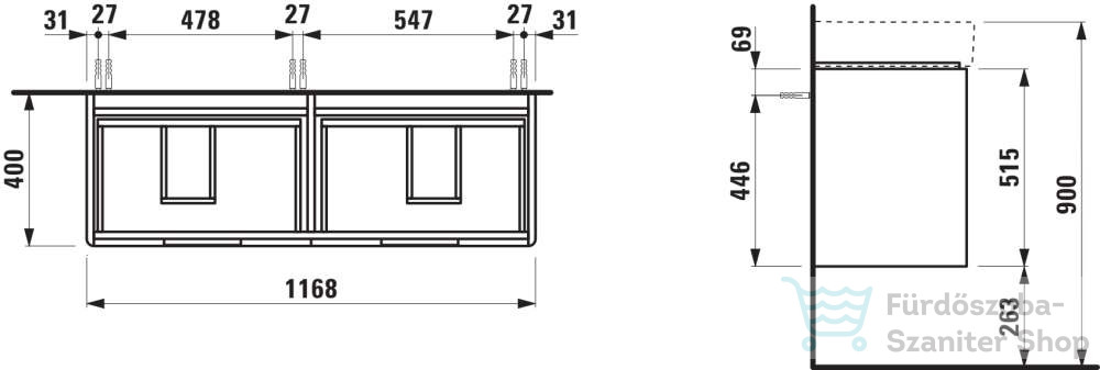 Laufen JUNA 117x40 cm alsószekrény, 4 fiók, VAL H814282 mosdóhoz, szürke H4116441092661
