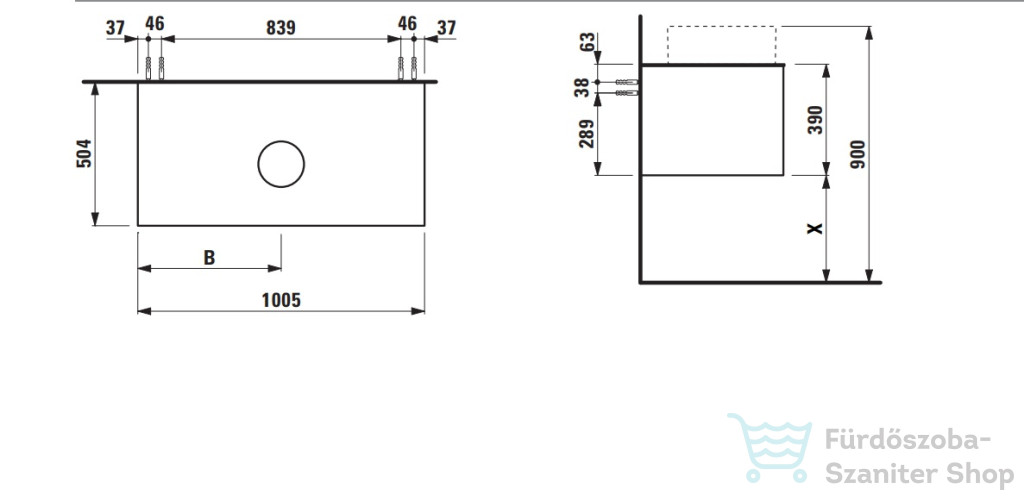 Laufen ARUN fiókos elem 1000, 1 fiókkal, kivágással középen, Ardesia Bianca felülettel, Világos tölgy H4141111512501