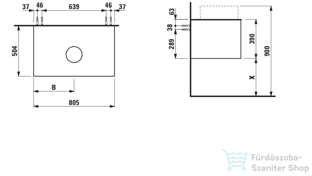 Laufen ARUN fiókos elem 800, 1 fiókkal, kivágással középen, Ardesia Nera felülettel, Világos tölgy H4151011512501