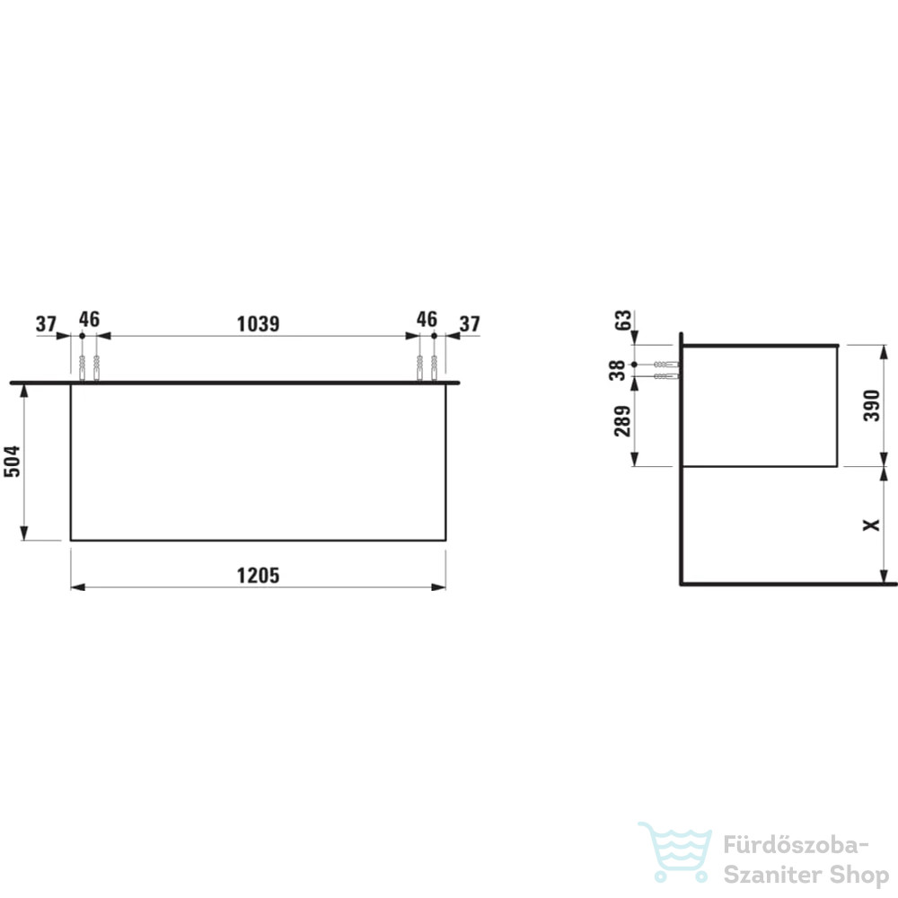 Laufen ARUN fiókos elem 1200, 1 fiókkal, kivágás nélkül, Ardesia Nera felülettel, Natúrfa H4151201516301
