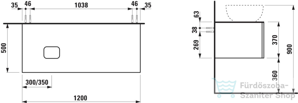 Laufen ILBAGNOALESSI 120x50 cm-es 1 fiókos alsószekrény bal oldali kivágással, H818975, H818976, H818977, H818978 mosdókhoz, sötétbarna H4303120974291