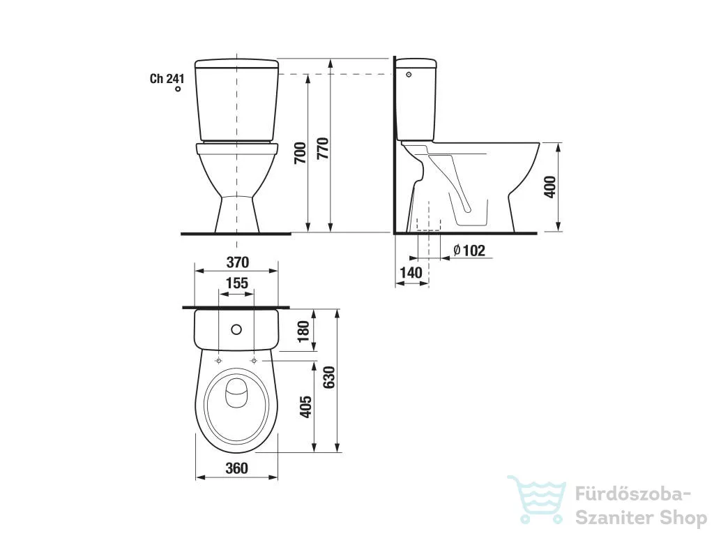 Jika LYRA PLUS alsó kifolyású monoblokkos wc, oldalsó bekötésű tartállyal, tető nélkül, fehér H8263870002413