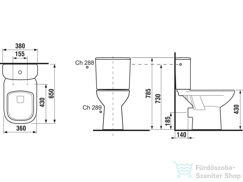 Jika DEEP BY JIKA hátsó kifolyású monoblokkos wc, oldalsó bekötésű tartállyal, tető nélkül, fehér H8266160002801