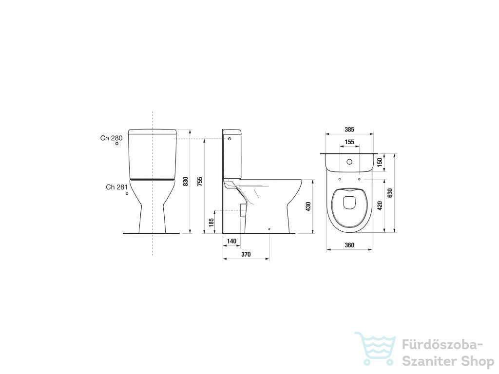 Jika LYRA PLUS perem nélküli hátsó kifolyású monoblokkos wc, oldalsó bekötésű tartállyal, tető nélkül, fehér H8273860002801