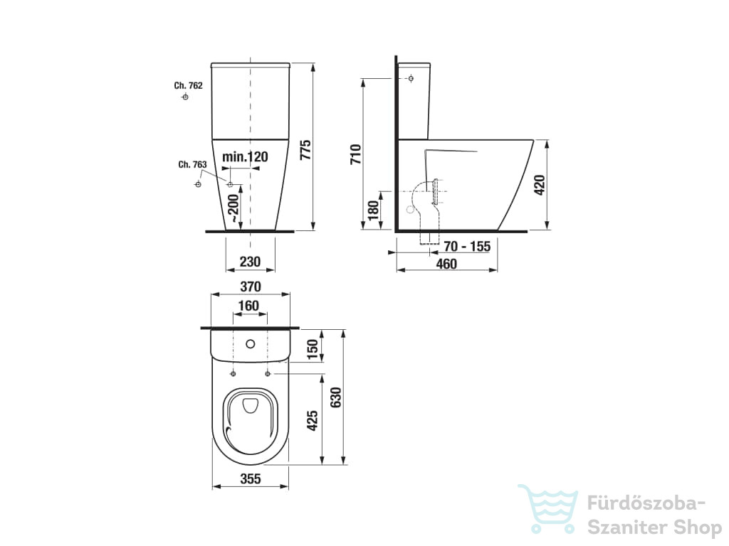 Jika CUBITO STYLE monoblokkos wc tartály oldalsó bekötéssel, fehér H8294220007621
