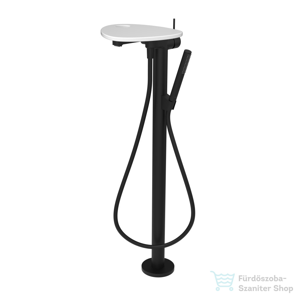 Laufen ADA szabadon álló kádtöltő csaptelep lyukas polccal, zuhanyszettel, alaptest nélkül, PVD matt fekete/matt fehér HF506781512000