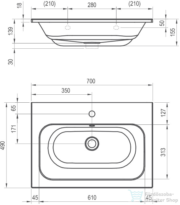 Ravak CHROME Slim 70 mosdó furattal, fehér XJG01170001