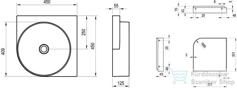 Ravak YARD 45 C konzollal falra szerelhető mosdó csaplyuk-és túlfolyó nélkül, Smoke Grey XJX0O045000